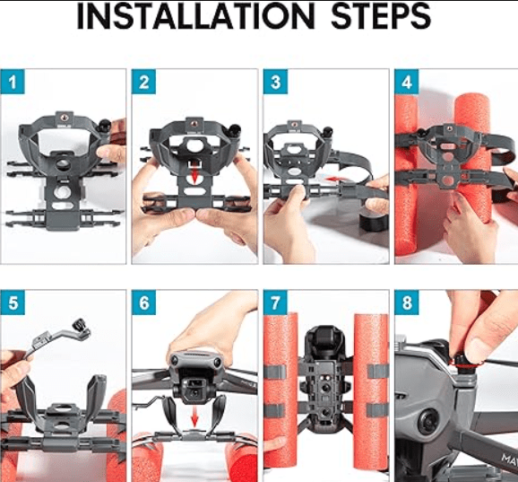The chassis kit for the DJI Mavic 3 Series drone allows the drone to take off and land on uneven terrain. The float beam protects your drone during water takeoff and landing, making water video shooting more interesting (the waterproof chassis will not affect the sensors). When the drone lands on mud, sand, or grass, it can protect the bottom of the drone as well as the stabilizer camera. When using the waterproof chassis on water, make sure the drone maintains balance after installation.